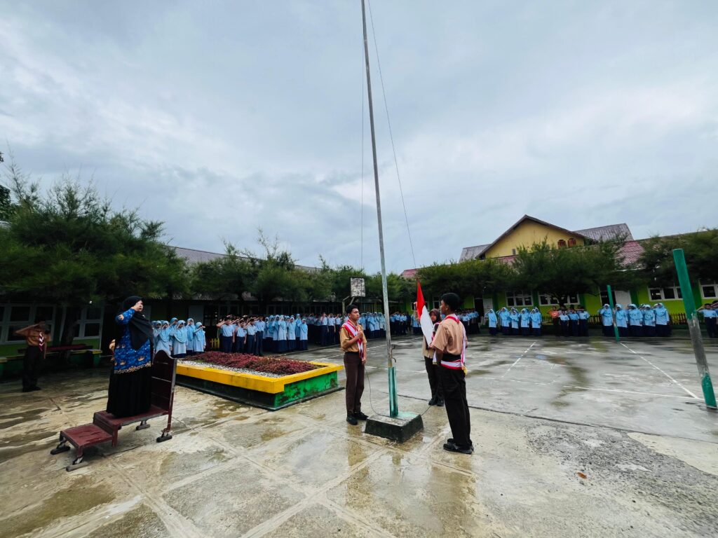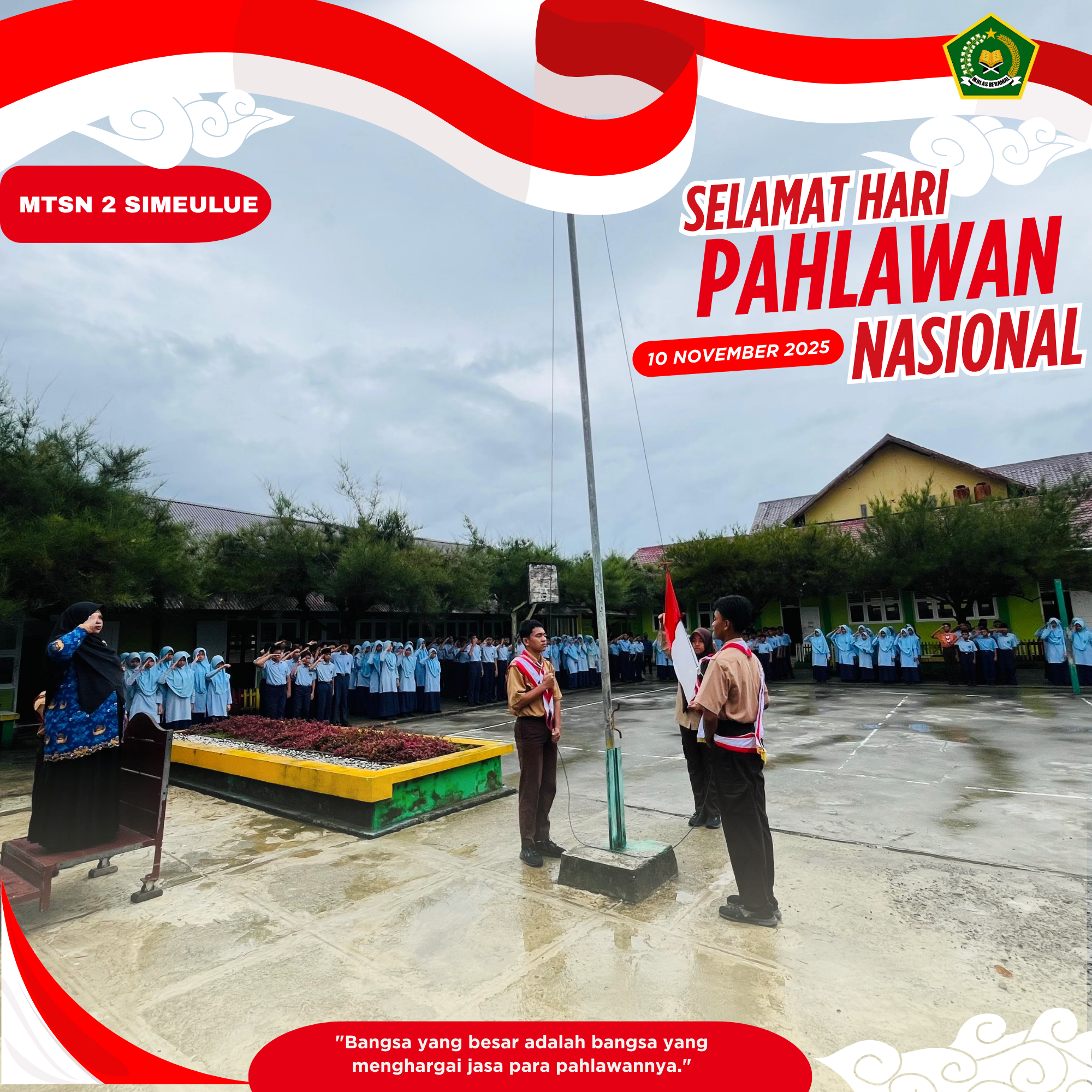 Sinabang — Memperingati Hari Pahlawan Nasional Tahun 2025, Madrasah Tsanawiyah Negeri (MTsN) 2 Simeulue melaksanakan upacara bendera di halaman madrasah pada Senin 10 November 2025. Kegiatan berlangsung khidmat dan tertib, diikuti oleh seluruh guru, tenaga kependidikan, serta peserta didik dengan penuh antusias.